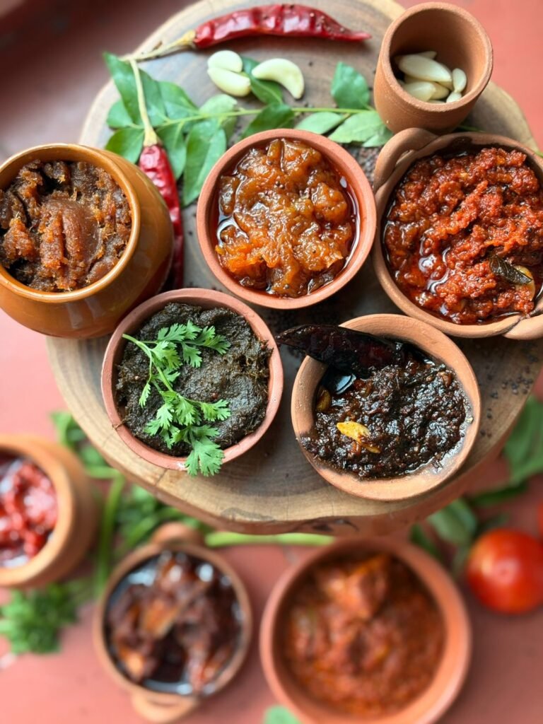 Discover our range of handcrafted South Indian pickles, spice powders, and snacks—made in small batches with traditional recipes, pure ingredients, and timeless methods. Taste heritage in every bite.